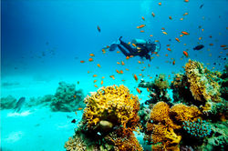 In the beautiful blue sea the coral garden is teeming with fish and marine life, from coral reef fish to Pelagic fish, a surprise for many people.